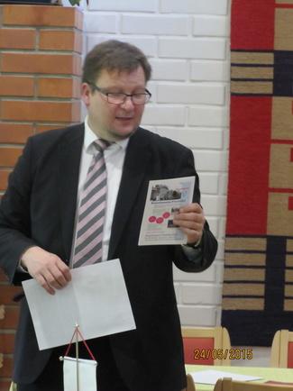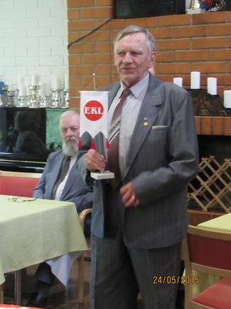 Liikuntahaaste kampanjan kolmas sija. Pauli vastaanottamassa palkintoa piirin syyskokouksessa Juuassa 2020